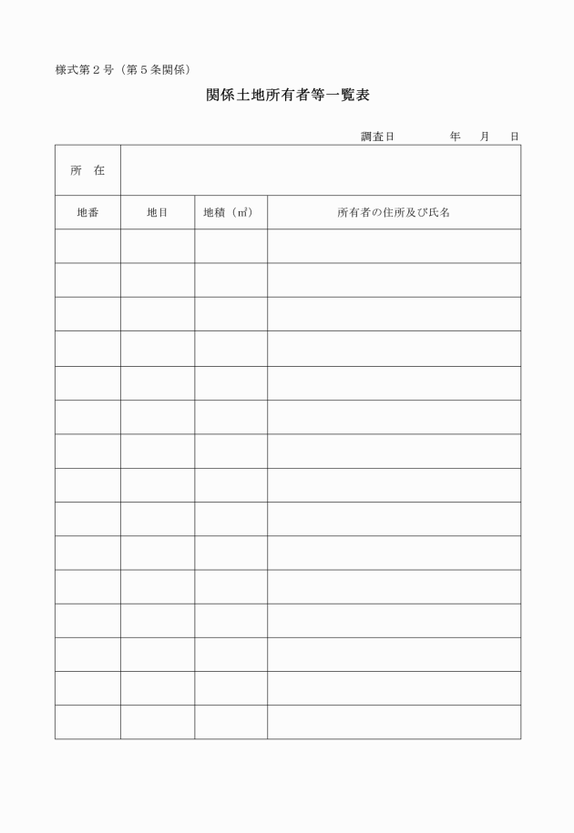 (5) 関係土地所有者等一覧表(様式第2号)